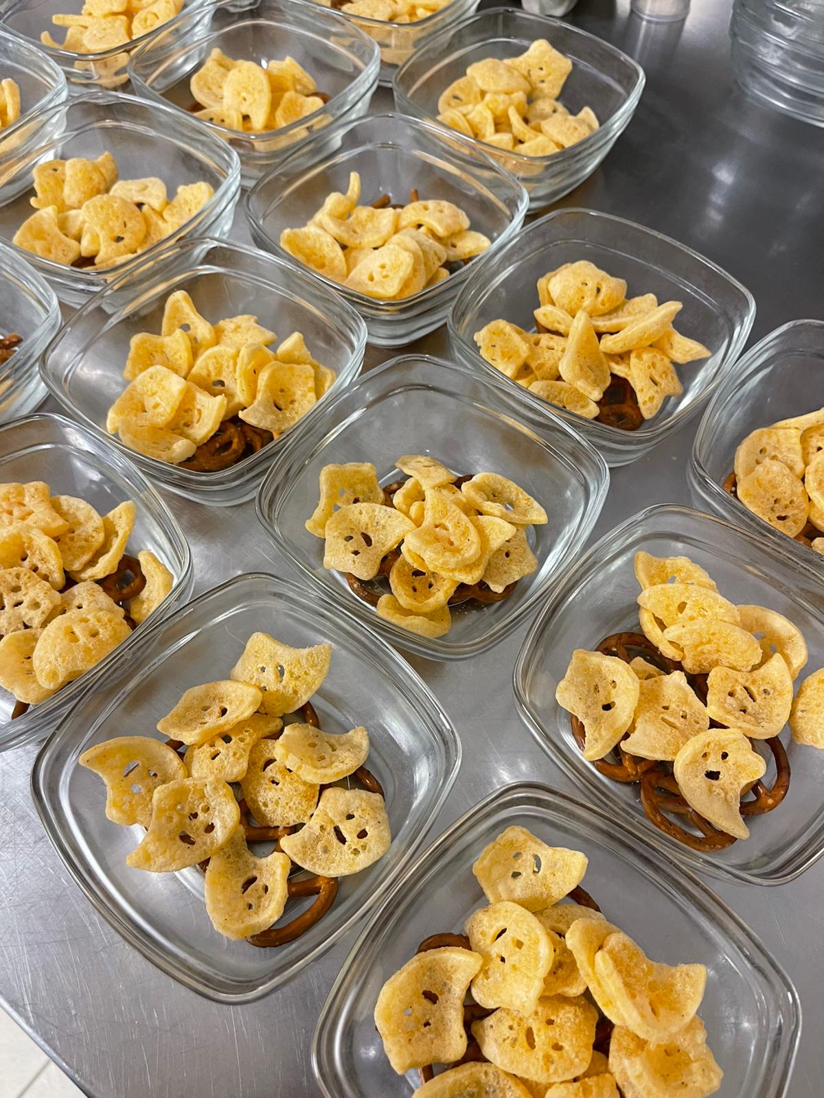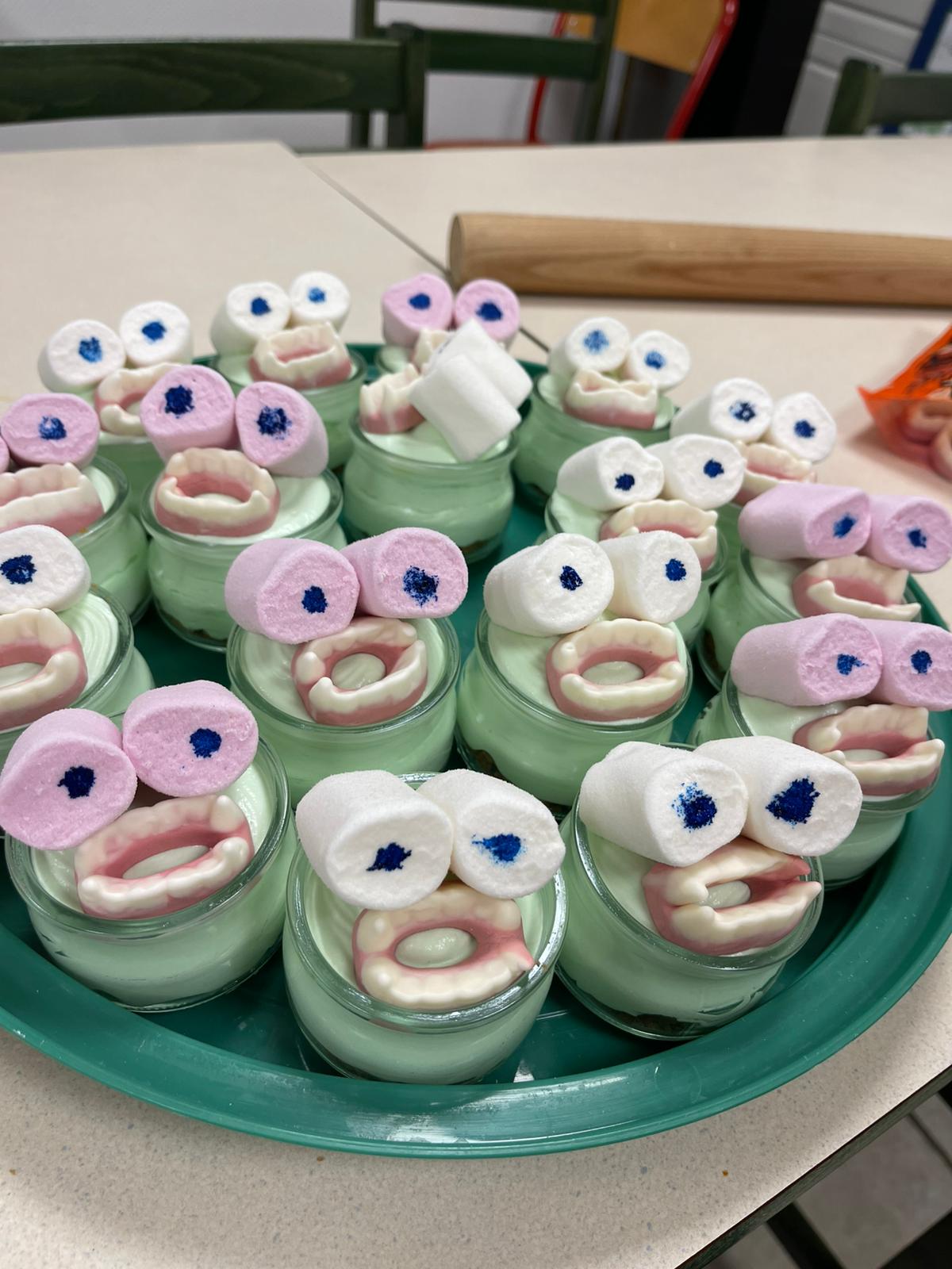 Au menu, des pizzas araignées, des œuf mimosa ‘’pourris’’, des balais de sorcière… ont régalé les papilles. Le clou du repas fut sans aucun doute un dessert monstrueux à souhait.
