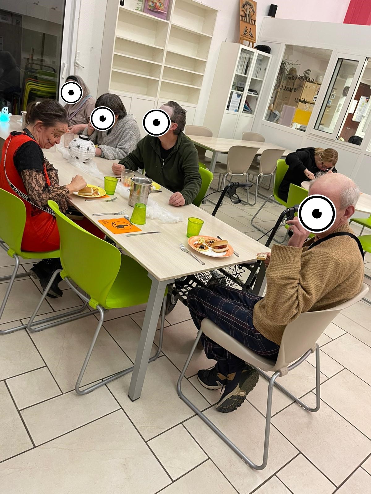 Un décor d’épouvante, a accueilli les convives dans une ambiance à la fois amusante et frissonnante. Toiles d’araignée, fantômes, citrouille… ont envahi l’espace, créant une atmosphère festive et immersive. Chaque détail a été pensé pour plonger les résidents dans l’esprit d’Halloween.